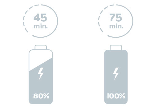 Супер швидка зарядка. 80% заряду за 45 хвилин, 100% — за 75 хвилин. Тепер можна швидко зарядитися і повернутися до риболовлі.