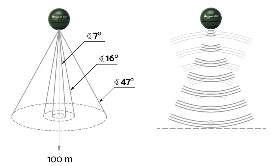 Ехолот Deeper CHIRP+ - перший у світі бездротовий закидний ехолот з GPS і WI-FI, що використовує технологію CHIRP. Дальність Wi-Fi з'єднання до 100 метрів, максимальна глибина - до 100 метрів. Трипроменевий, дуже компактний і легкий (90 г) ехолот можна використовувати при лові з берега, з човна і на зимовій риболовлі. Дозволяє створювати батиметричні карти як з човна, так і з берега.