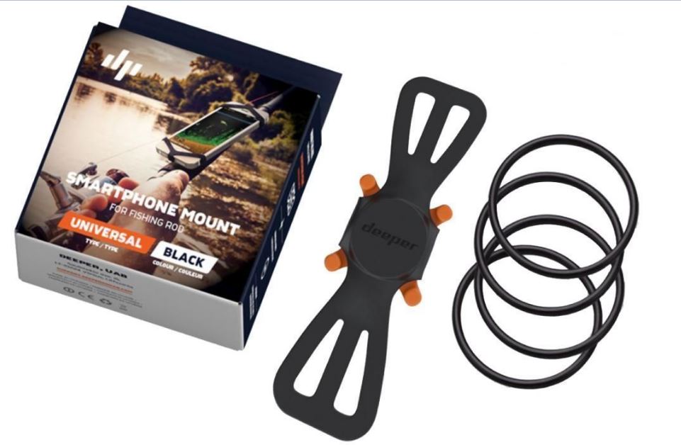 Кріплення Deeper для фіксації смартфона на вудці (Deeper Smartphone Mount) дозволяє управляти та переглядати дані ехолота Deeper, тримаючи однією рукою вудку. М'які силіконові фісксатори досить міцні, щоб утримувати смартфон нерухомо на місці, не перекриваючи екран.