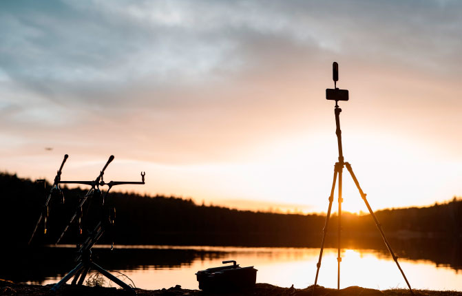 Встановіть розширювач діапазону і тримач телефона на штатив і зафіксуйте розширювач у вертикальному положенні на висоті 1,20-1,60 м для найкращої якості зв’язку між вашим телефоном та ехолотом Deeper.