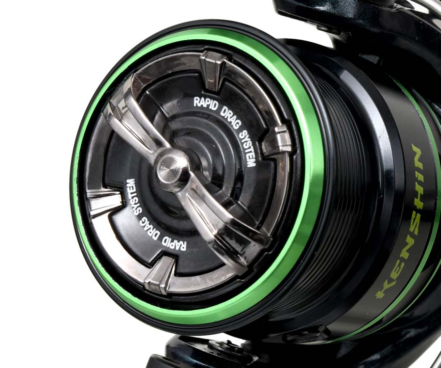Серія Kenshin надає безпрецедентну можливість для широкого кола риболовів оснастити свої легкі графітові вудлища відповідними котушками, не виходячи за рамки розумного бюджету. Компактний корпус і ротор виготовлено з пластику GF+ із підвищеним вмістом вуглецевого волокна, завдяки чому вони вирізняються міцністю й малою вагою. Котушку обладнано точеною алюмінієвою шпулею і швидким фрикціоном Rapid Drag, який повністю можна затягнути менш, ніж за 1 оберт ручки. Кулісний механізм удосконаленої конструкції забезпечує якісне укладання жилки. Screw-in handle – ручка, що безпосередньо угвинчується в провідну шестерню, – повністю виключає люфт у вузлі кріплення та вирізняється високою надійністю. Котушка постачається в неопреновому чохлі, що має кишеньку для рукояті.