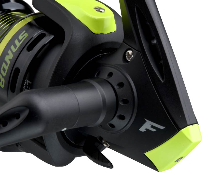 Серія спінінгових котушок Flagman Bonus – чудовий приклад оптимального співвідношення ціна/якість. Головна перевага котушок Bonus – виключно м'який і рівний хід, що нечасто зустрічається в моделей цієї цінової категорії. Додайте сюди міцний і стильний пластиковий корпус, полегшений ротор, прекрасні тягові характеристики й динамічне балансування, якісне укладання жилки – й отримаємо портрет доступної котушки, яка має повний набір необхідних характеристик. Моделі всіх розмірів – 2000S, 2500S, 3000S – обладнано полегшеними низькопрофільними алюмінієвими шпулями з конічним буртиком, що значно підвищує дальність закидання. Плавне регулювання фрикціона дозволяє підібрати необхідне гальмівне зусилля. Ролик укладача жилки має надтверде покриття, а його форма перешкоджає перекручуванню жилки або шнура. Ручку вкручують безпосередньо в головну пару, її виготовлено з високоміцного пластику. М'який чохол у комплекті. Додатковою шпулею котушки не комплектуються.