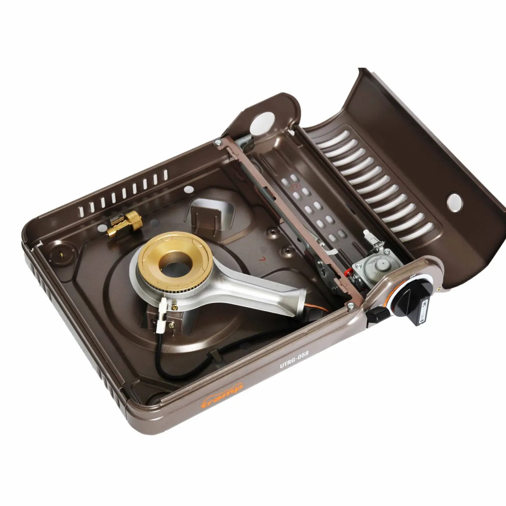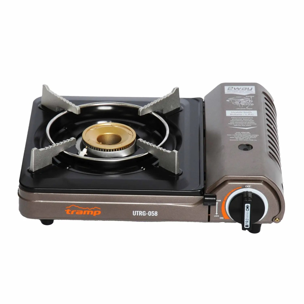 Tramp UTRG-058 — універсальна портативна газова туристична плита, яка працює і від газового картриджа і від «великого» побутового пропанового балона (LPG).