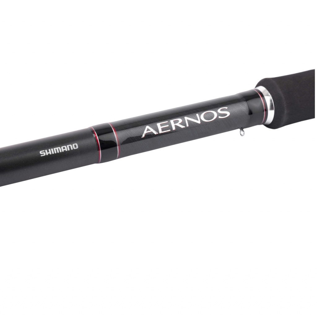 Вудилище фідерне Shimano Aernos AX відноситься до серії універсальних фідерів для різних умов лову, яка отримала деякі оновлення в 2020 році. Бланк виготовлений з карбону XT60, посиленого сполучними смолами за технологією NANO. В результаті вдалося підвищити міцність матеріалу і чуйність, при цьому його маса стала менше. Плавний вигин бланка і рівномірний розподіл навантаження під час закидання дозволяють добитися хорошого польоту оснащення, якщо перспективна точка знаходиться на великій відстані від берега. Пропускні кільця Shimano Stainless Steel Hardlite є найбільш оптимальними для снастей такого класу, так як вони мають міцну раму з нержавіючої сталі і тверді вставки, які підходять для роботи волосінями і плетеними шнурами. На вудилище встановлений котушкотримач Shimano Custom VSS з верхньою фіксуючою гайкою, покритою синтетичним пінистим матеріалом EVA. Він ідеально поєднується з коркової ручкою, в нижній частині якої є аналогічна вставка, що зроблено для спрощення її чищення після риболовлі.
