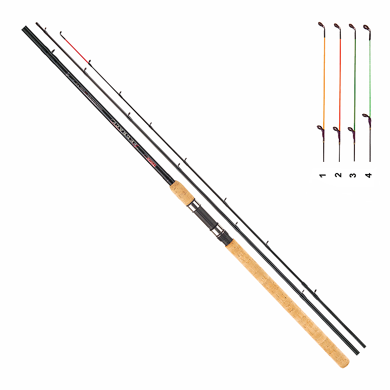 У комплекті йде чотири вершинки що допомагають грамотно налаштувати снасть під будь-які умови лову.