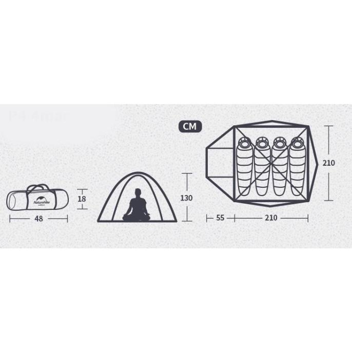 Двошаровий, 4-х місний намет Naturehike P-Series 210T65D (NH18Z044-P green) з алюмінієвими дугами, P-Series, зелений.
