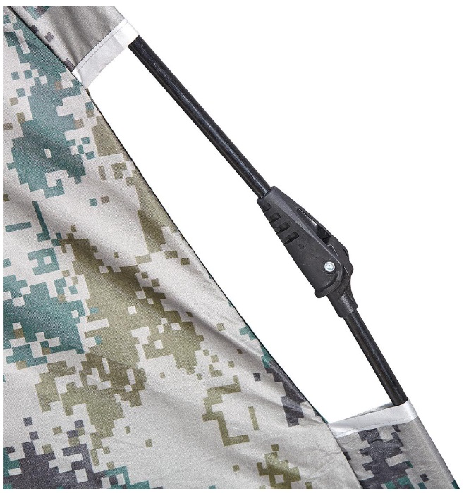 Каркас намету являє собою розкладну конструкцію з 4 дуг, що складаються з трьох сегментів. Все, що потрібно — розгорнути намет, вирівняти дуги, піднявши намет вгору, поставити і притиснути зверху по центру з невеликим зусиллям.