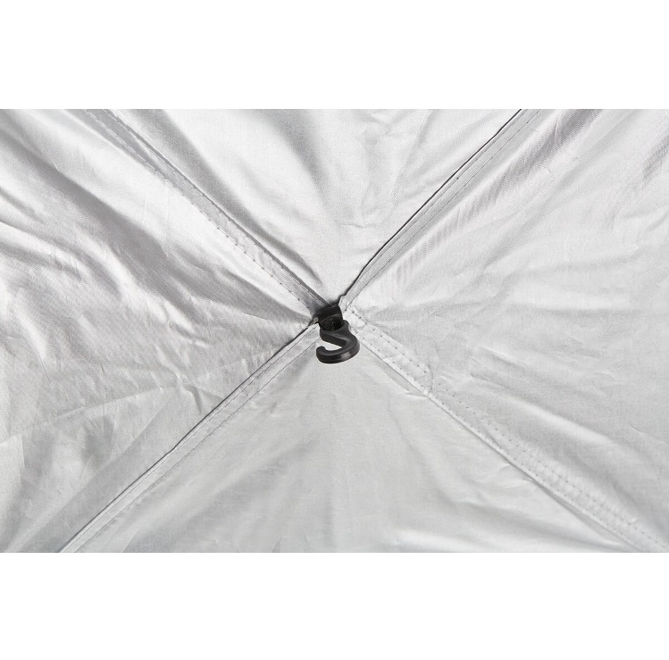 Модель оснащена кишенею усередині для зберігання необхідних дрібниць і гачком під сітчастим куполом для підвішування ліхтарика. Намет комплектується стропами і сталевими кілочками, для фіксації намету до землі.
