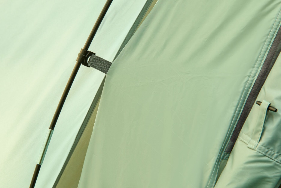 Вхід-вихід на половину продубльований антимоскітною сіткою, що забезпечує комфортну вентиляцію в жарку погоду. Двері палатки і тенту оснащені двосторонньою фурнітурою, що дозволяє зручно відкривати і закривати їх як зовні, так і зсередини.