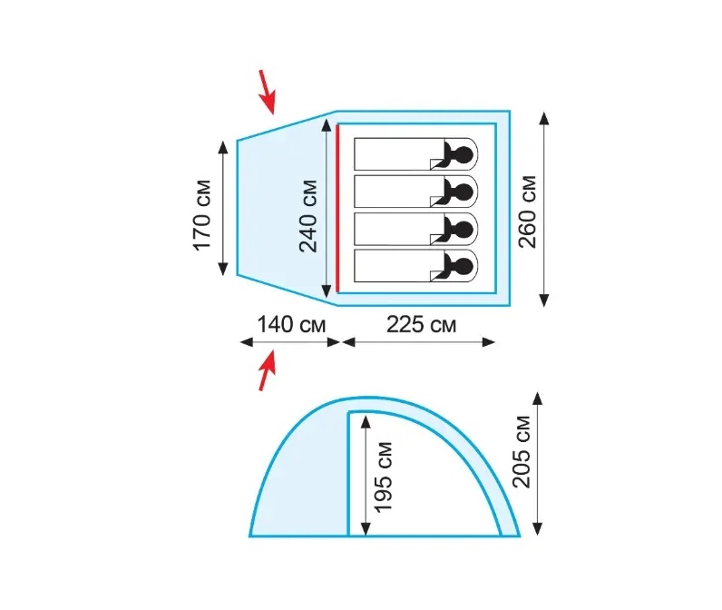 Дуги розташовані в зовнішньому тенті, швидке встановлення