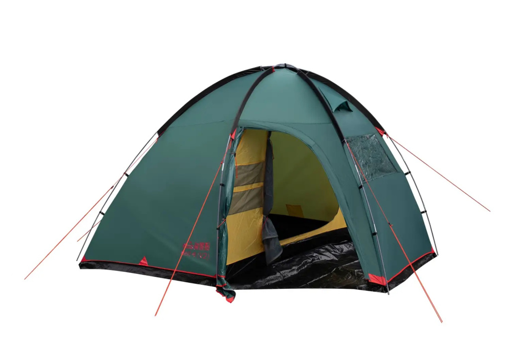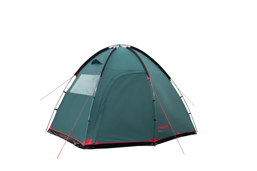 Однокімнатний чотиримісний кемпінговий намет Tramp Bell 4 (V2). Просторий високий тамбур з 2 входами і оглядовим вікном в торцевій стінці.