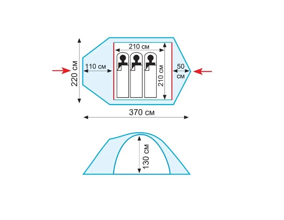 Внутрішній намет: 100% дихаючий поліестер
