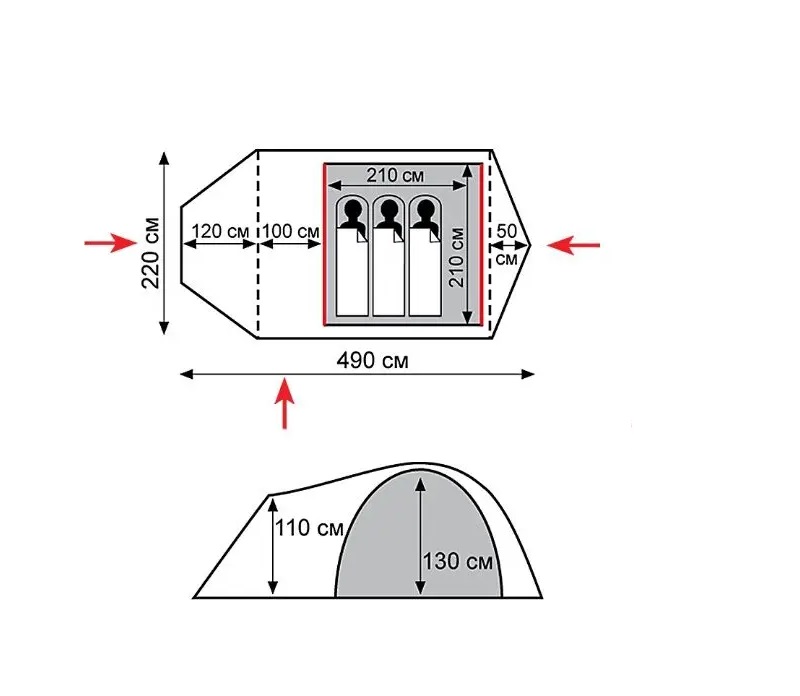 Двошаровий намет з трьома входами