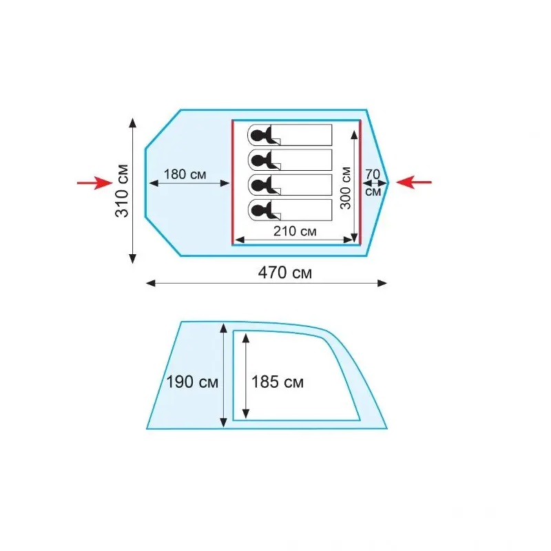 - Двошаровий кемпінговий намет з двома входами, великим тамбуром