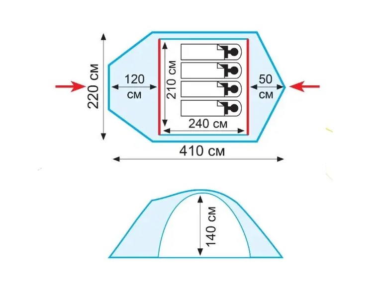 Матеріал внутрішнього намета: 100% дихаючий polyester