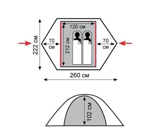 - Двошаровий намет з двома входами та 2 тамбурами