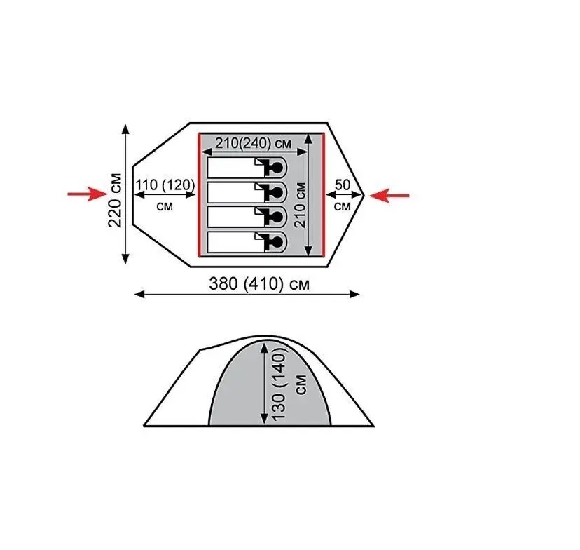 - входи внутрішнього намета продубльовані антимоскітною сіткою