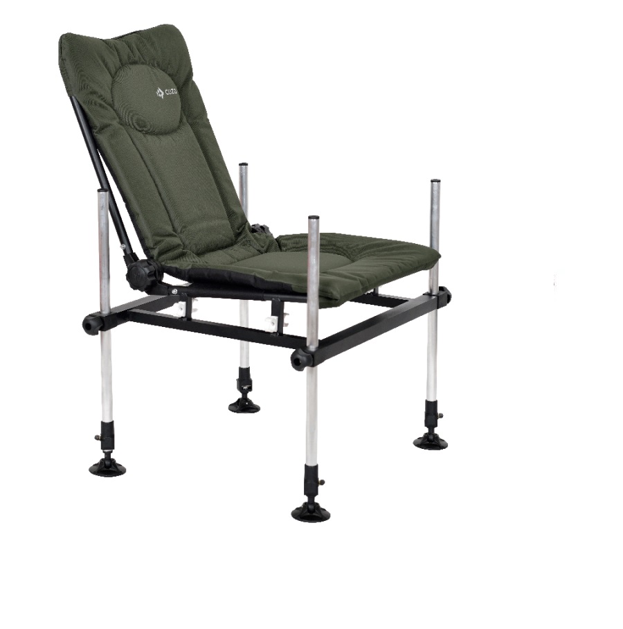 Крісло F3 CUZO розроблено для наземних рибалок, які ловлять рибу методом Feeder Methood. Його каркас виготовлений з алюмінієвих профілів, завдяки чому вага не перевищує 6,5 кг. Спинка має шарнір, що дозволяє змінювати її кут нахилу. Що значно покращує комфорт багатогодинної риболовлі. Головною перевагою цієї моделі є 25-мм телескопічні ніжки. Висота кожного з них регулюється окремо. Крім того, вони оснащені вставкою з різьбою 3/8 BS x20BSF, що дозволяє вкрутити додаткові аксесуари.