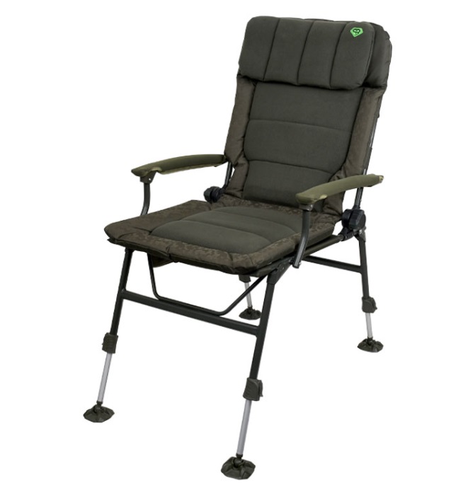 Carp Pro Diamond Bliss Chair – складане коропове крісло з підлокітниками, яке розроблене спеціально для коропової ловлі та гарантує риболову високий рівень комфорту. За рахунок використання надійної та міцної рами зі сталі та алюмінію, крісло без проблем витримує високі навантаження – до 150 кг. Оббивку крісла в унікальному камуфляжному забарвленні Carp Pro виконано зі зносостійкого водовідштовхувального матеріалу 650D і м'якого мікрофлісу. Завдяки знімному, регульованому за висотою підголівнику та м'яким вставкам із піноматеріалу з ефектом пам'яті в підголівнику, сидінні та спинці, тіло набуває природного положення, що сприяє довготривалій і нестомлюючій ловлі. А м'які теплі накладки з неопрену на підлокітниках + зручна кишеня для напоїв і ґаджетів вдало доповнять ваші відчуття релаксу та максимального комфорту під час відпочинку. Коропове крісло Carp Pro Diamond Bliss Chair швидко встановлюється, а кут нахилу спинки легко і просто регулюється в широких межах. Крісло можна без проблем розмістити на нерівній і похилій поверхні завдяки чотирьом телескопічним ніжкам із надійними та легкими у використанні фіксаторами. Ніжки оснащено збільшеними шарнірними п'ятами, які не дають кріслу провалюватися в м'який ґрунт і забезпечують додаткову стійкість на похилій поверхні. У транспортному положенні крісло CP Diamond Bliss Chair досить компактне і зручне для перевезення.
