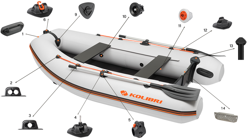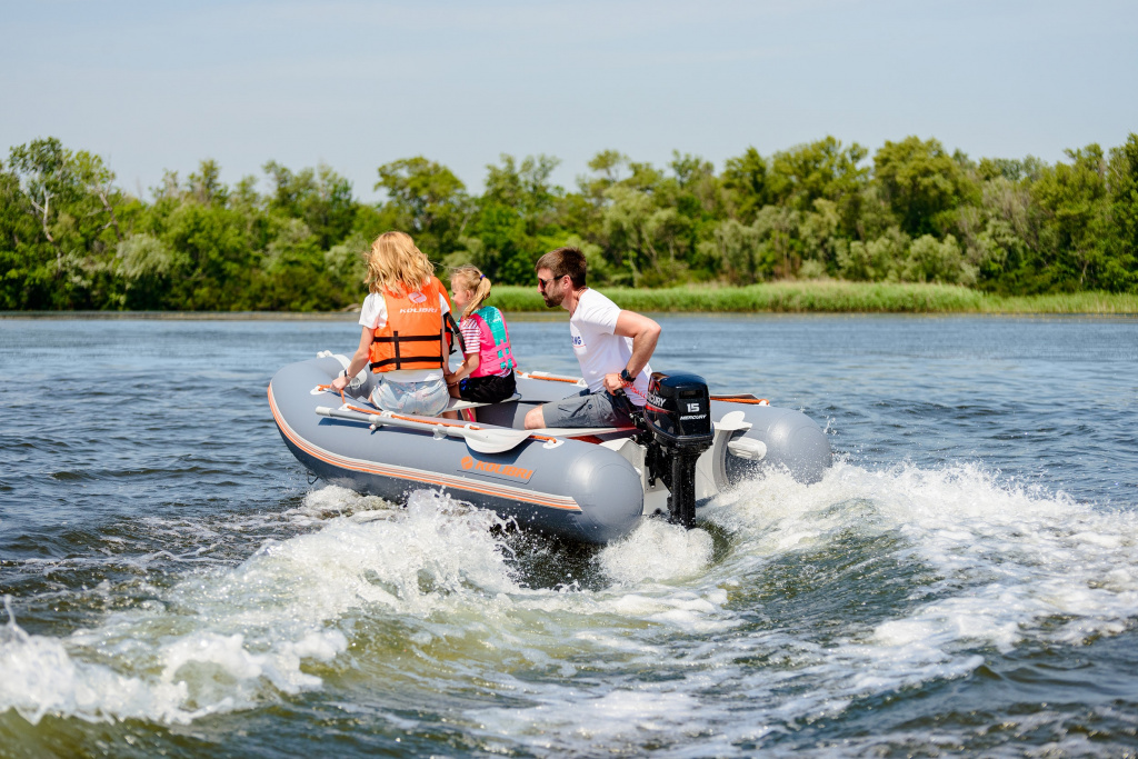 Надувний човен Kolibri КМ-300DL - полегшений кільовий моторний човен серії Лайт. Матеріалом для виготовлення послужив міцний 5-ти шаровий ПВХ щільністю 950 гр/м2. У комплекті з човном йде днищовий настил слань-книжка з 9 мм вологостійкої фанери. Завдяки цьому човен має на 8 — 9 кг менше ваги, ніж стандартна кільова модель з жорстким настилом. На даний момент всі човни компанії Kolibri виробляються за сучасними технологіями ТВЧ, завдяки чому мають високу якість і довговічність.