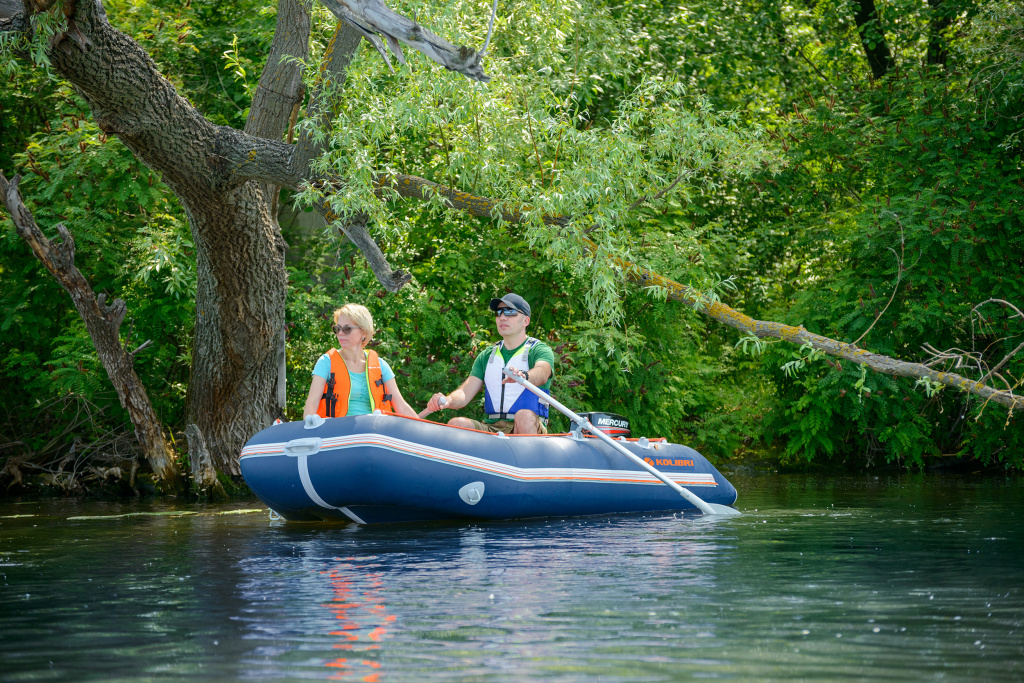 Надувний човен Kolibri КМ-280Д Профі - кільовий моторний човен з твердою палубою. На даний момент всі човни компанії Kolibri виробляються за сучасними технологіями ТВЧ, завдяки чому мають високу якість і довговічність. Дана модель розрахована на 2 особи та має вантажопідйомність 350 кг.
