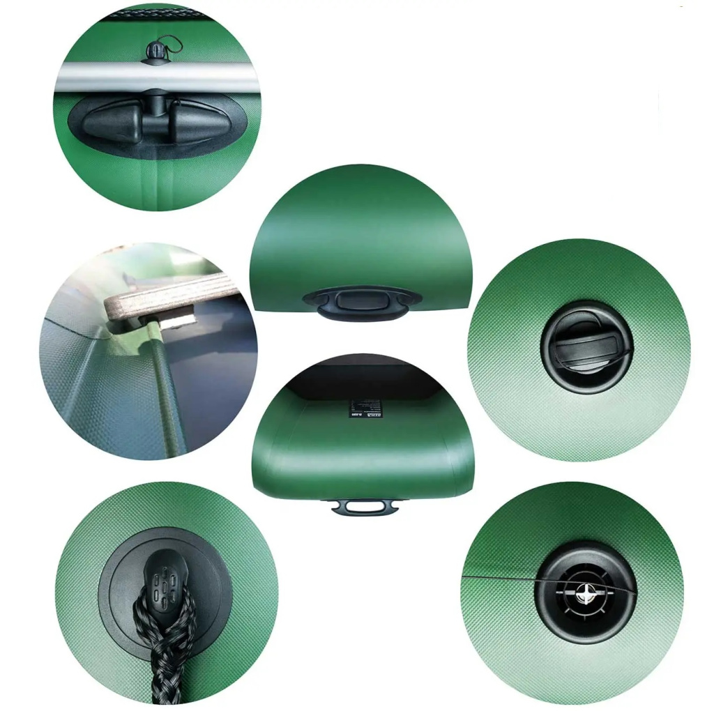 Комплектація: Надувний човен Ладья, сумка, весла, насос, ремкомплект, сидіння 2 шт, слань-килимок з 2-х сланей, документи