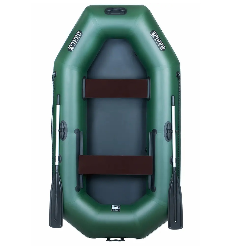 Надувний човен Ладья ЛТ-250 без настилу - 2-місний човен ПВХ для риболовлі. Класичний зелений колір добре маскує його в очереті.