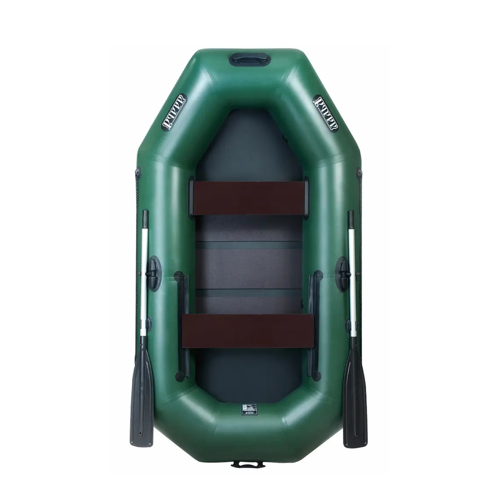 Комплектація: Надувний човен Ладья, сумка, весла, насос, ремкомплект, сидіння 2 шт, слань-килимок з 3-х сланей, документи