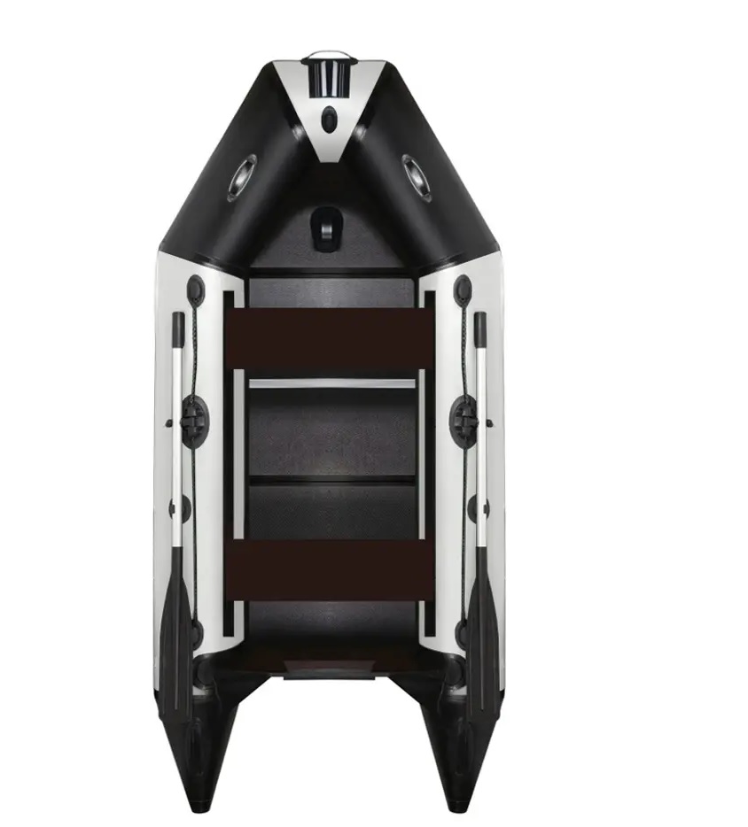 На верхньому торці транця приклеєний гумовий бампер. Між транцем і балонами є бризговідсікаючі косинки.