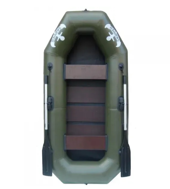 Гребний надувний човен Skipper S-240B - дуже легкий надувний човен виробництва фірми Skipper (Шкіпер) з Дніпра. Продукція цієї фірми отримала заслужену увагу завдяки європейській якості та низьким цінам. Skipper S-240B виготовляється з високоякісного корейського спеціального матеріалу для надувних човнів Unisol boat – 950 (щільність матеріалу – 950 г на кв. м). Човен призначений для риболовлі, туризму та відпочинку на воді. Вантажопідйомність, заявлена фірмою-виробником, становить 220 кг. По борту човна розташований привальник, що йде як додаткова комплектація. Двигуном цього човна є весла, які йдуть у комплекті постачання човна. Вони виготовлені з металу та пластику (лопаті).