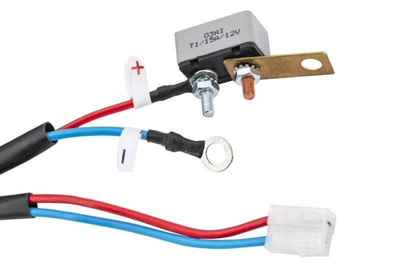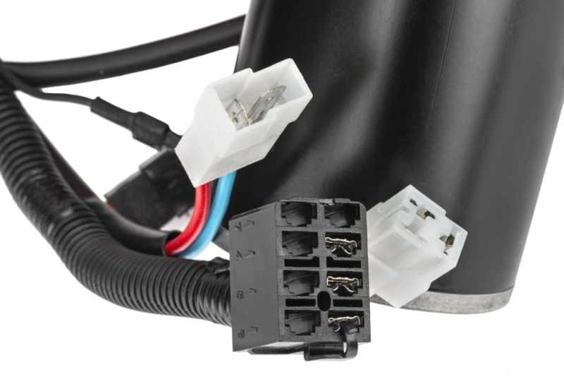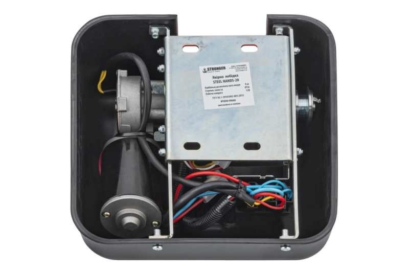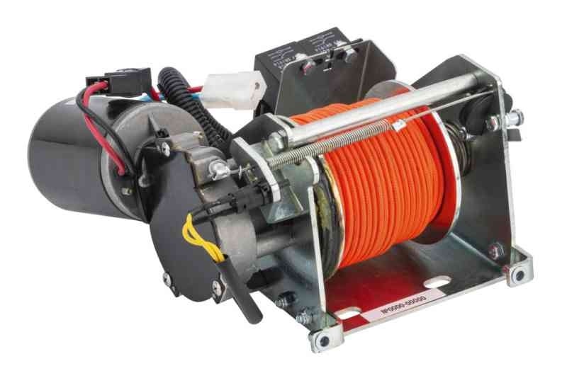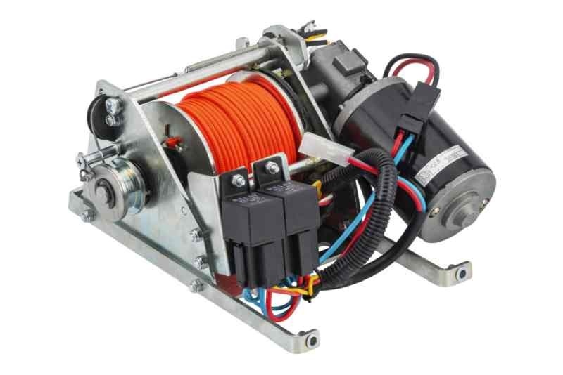 В електричній частині лебідки використовується двигун з робочою напругою 12 В. На кришці встановлена не фіксована трьох позиційна, вологозахищена кнопка, в електичний ланцюг включений блок реле. У комплекті постачається провід для підключення лебідки до акумуляторної батареї довжиною 5 метрів та теплове запобіжне реле.