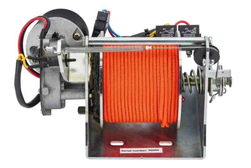 Механізм лебідки складається з двигуна із закритим редукторним механізмом і механічним приводом для здійснення руху котушки по валу. Всі механічні частини, що беруть участь у роботі лебідки змащені спеціальним водовідштовхувальним мастилом.