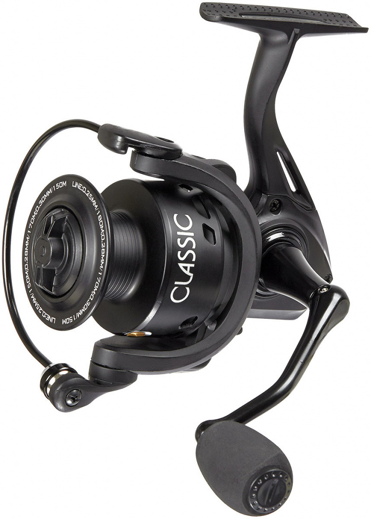 Котушка Brain Classic – бюджетна модель для фідерної, а в деяких випадках і для спінінгової риболовлі. Вона володіє підвищеним тяговим зусиллям, що допоможе впоратися з вимотуванням важкого оснащення або з виведенням великої риби. Внутрішній механізм налічує 4 шарикопідшипника – два на осі провідної шестерні, один на веденій і ще один у ролику жилковкладача, завдяки чому продовжується його термін служби. Шпуля котушки має глибокий профіль, що дозволяє вмістити достатній запас волосіні або шнура. Вона виконана з алюмінію, її передній бортик має скошену форму для забезпечення вільного вильоту оснастки. Кругла латунна кліпса, що встановлена на шпулі, має конструкцію із пружиною і оснащена пластиковою підкладкою, завдяки чому не буде пошкоджувати шнур під час фіксації дистанції лову в фідерної риболовлі. У котушці реалізована сама надійна система кріплення ручки – вона угвинчується безпосередньо у вісь провідної шестерні, що виключає утворення люфтів в цьому вузлі. Котушка Brain Classic випускається в чотирьох типорозмірах, де 3000 і 4000 можуть встановлюватися на пікерні і легкі фідерні вудилища або потужні спінінги, а 5000 і 6000 підійдуть для важких фідерів з тестом до 180 грам.