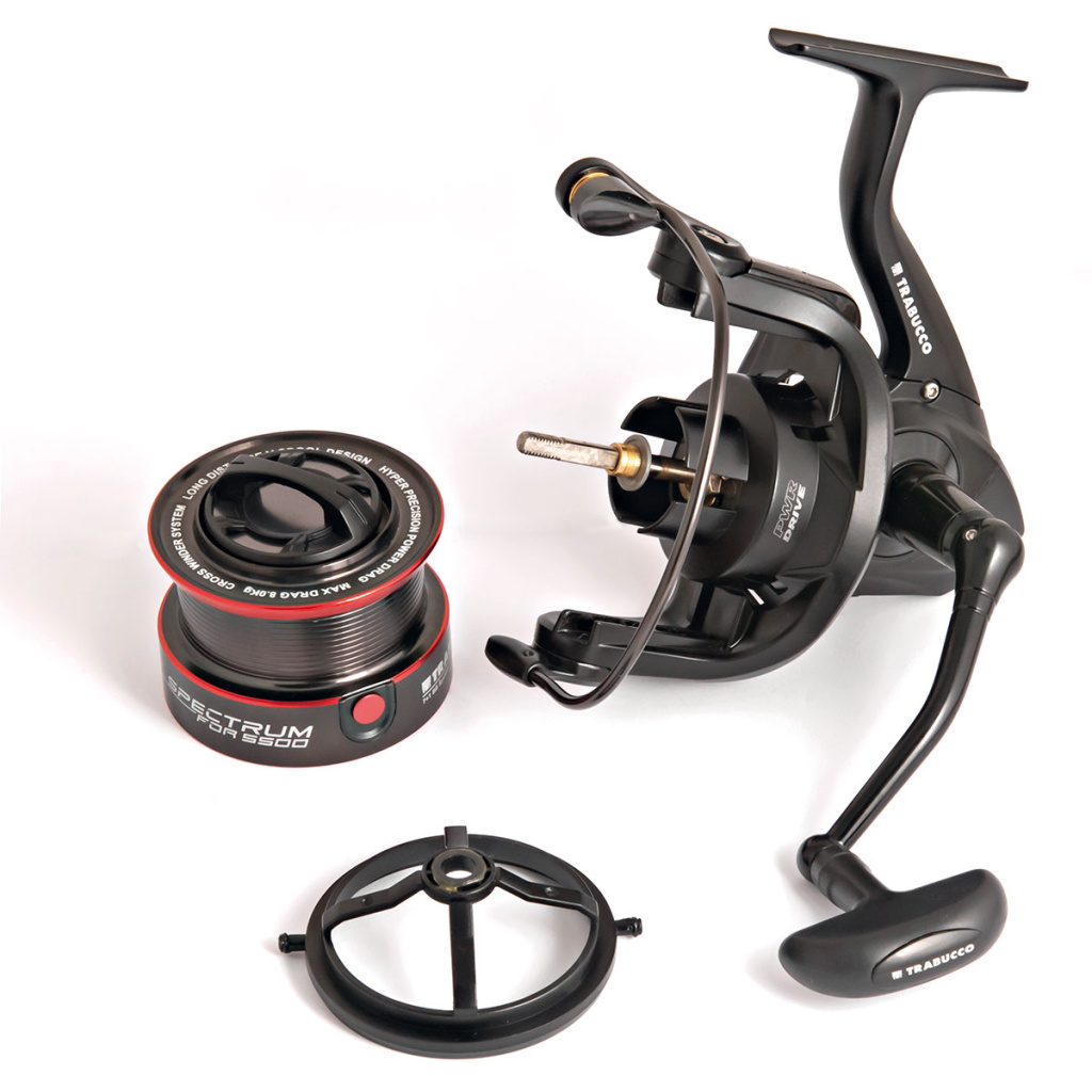 Котушка Trabucco SPECTRUM FDR-новинка у серії котушок Trabucco 2021 року. Виготовлена відповідно до найновіших вимог до фідерних котушок. Корпус та ротор із графіту з добавкою спеціальних компонентів. 7+1 підшипники закритого типу з подвійною обичайкою. Полегшена алюмінієва шпуля з V-подібною кромкою для забезпечення далекого та точного закидання. На шпулі дві кліпси-червона та чорна для фіксації різної дистанції закидання. Під шпулею спеціальна вставка для захисту волосіні від заплутування.