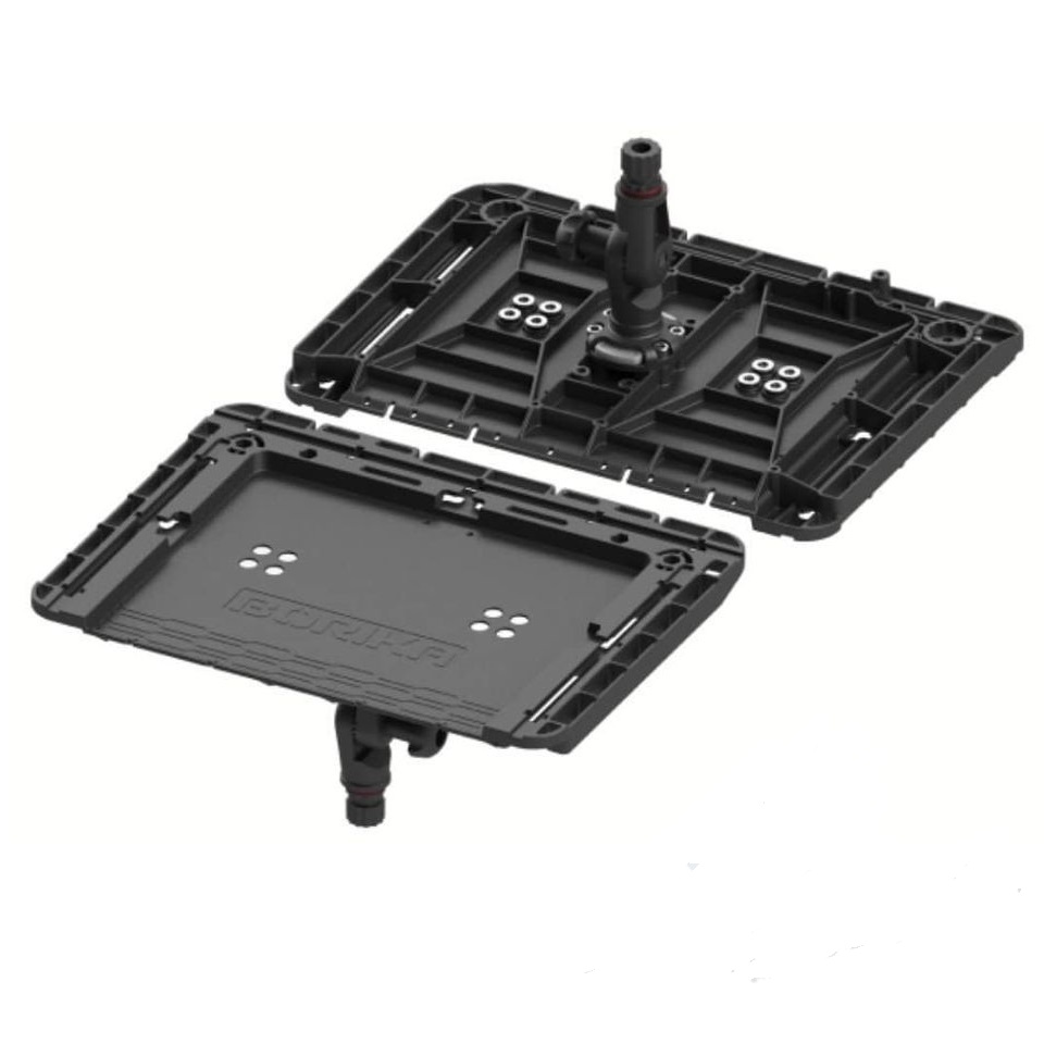 Стіл монтується на один універсальний замок Fasten, а замок, відповідно, можуть бути встановлені на будь-яку поверхню. Стіл виготовлений із чорного пластику.
