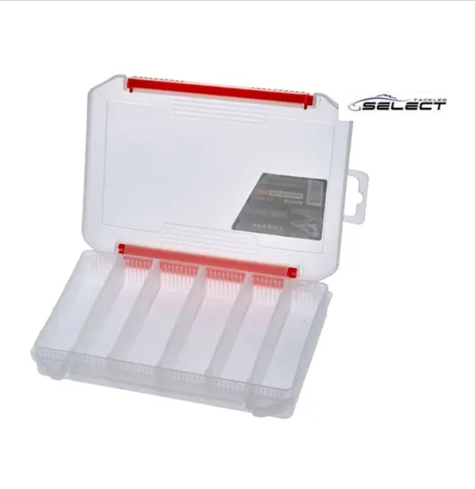 Коробка Select Lure Box SLHX-1902 – невелика модель, розрахована на зберігання приманок загальною довжиною до 120 мм. Її особливістю є те, що кришка з двох сторін оснащена широкими застібками, що дозволяють відкривати її праворуч і ліворуч, як зручно буде рибалці. Внутрішній простір є рівним майданчиком, який можна розділити на поперечні відсіки наявними перегородками. Така конструкція дозволяє розміщувати як вузькі, так і ширші приманки і раціональніше використовувати весь внутрішній простір.
