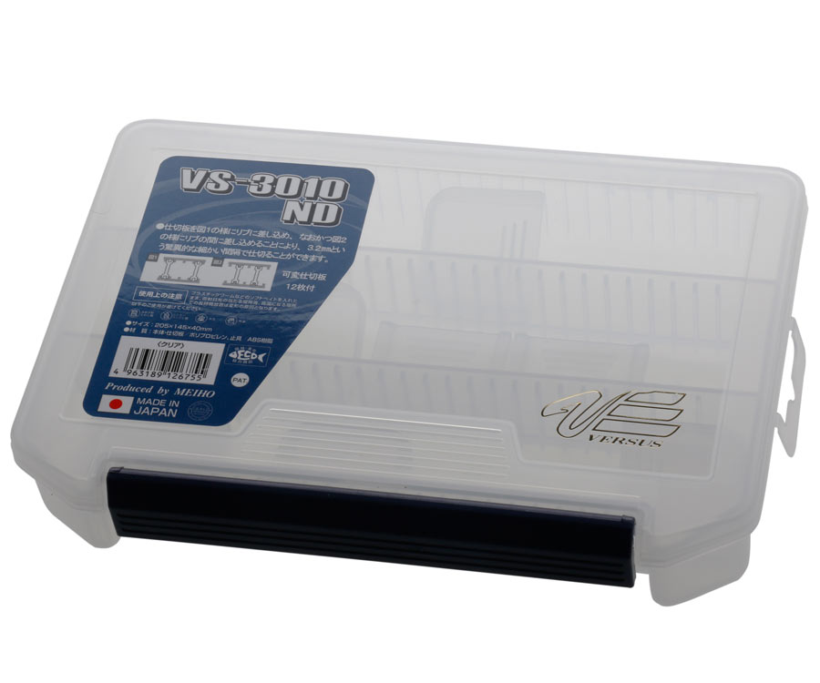 Коробка MEIHO VS-3010 серії Versus виконана з якісного міцного пластику та всього однією застібкою, яка може витримати багато зусиль при відкриванні / закриванні, щільно прилягає до корпусу, і такою застібкою легко керувати однією рукою. Відрізняється конструктивною особливістю знімних роздільників: їх положення можна фіксувати як між направляючих ребер, так і по направляючим. Це дає Вам більше свободи у формуванні простору.