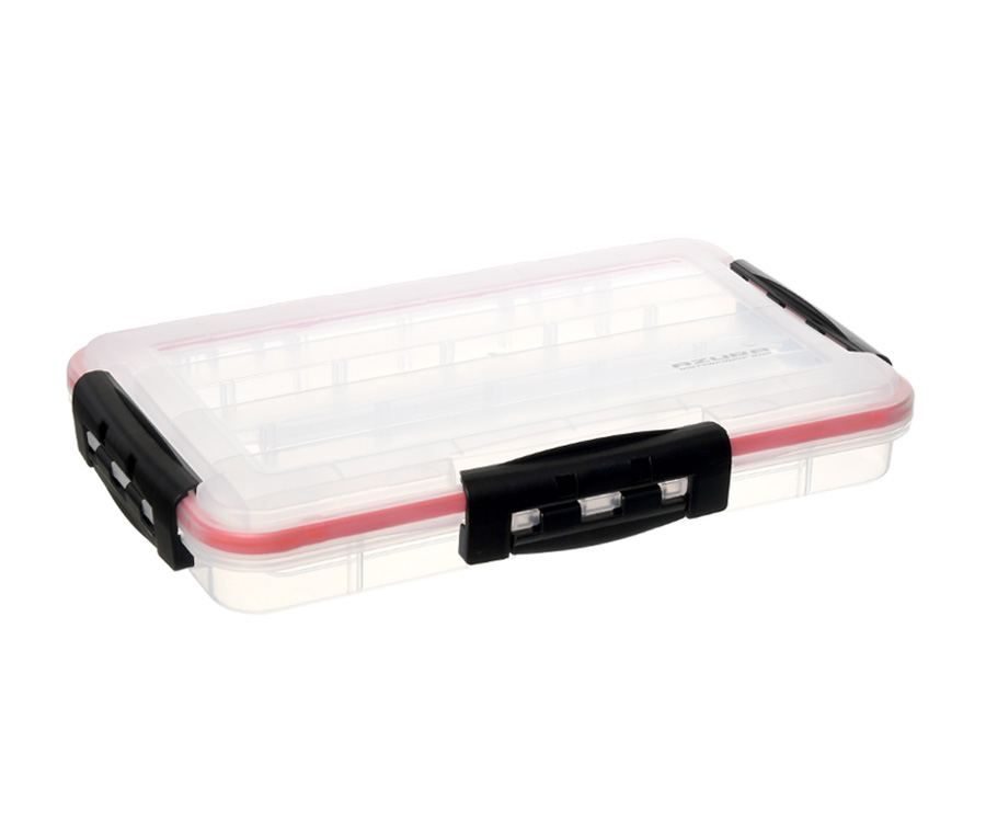 Azura Sawada Waterproof Box ASWB-L – одностороння пластикова коробка, яка ідеально підійде для зберігання спінінгових приманок, приладдя та аксесуарів. Основне відділення розбито на чотири поздовжні відсіки, які своєю чергою поділено знімними перегородками на секції. Конструкція Waterproof Box дозволяє довільно вибирати розмір і кількість секцій, при цьому перегородки можна пересувати з досить невеликим кроком. Завдяки такому підходу риболов може оптимально для себе сформувати внутрішній простір Azura Sawada Waterproof Box. Коробку виготовлено з якісного пластику, що вирізняється довговічністю, стійка до матеріалу м'яких приманок. Гумова прокладка в кришці й три запори надійно оберігають вміст коробки від проникнення води.