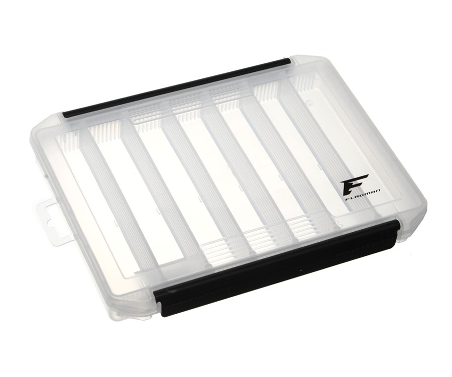 Flagman Tackle Box #5 – містка одностороння коробка, яку виготовлено з прозорого ударостійкого пластику. Завдяки системі знімних перегородок відмінно підійде для зберігання і транспортування приманок різних типів і розмірів, а також джиг-головок, елементів оснастки та інших аксесуарів. Конструкція дає змогу довільно обирати розмір і кількість відділень, пересуваючи перегородки з невеликим кроком та ефективно формуючи під себе внутрішній простір коробки. Кришка рибальської коробки Flagman Tackle Box #5 закривається на міцну надійну защібку. Розміри: 24,4x16,5x3,5 см.