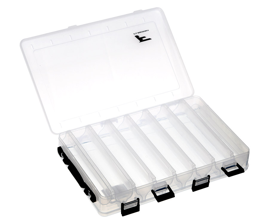 Flagman Tackle Box #21 – двостороння коробка, яка виготовлена з прозорого ударостійкого пластику і призначена для зберігання та транспортування воблерів. У коробці Flagman Tackle Box #21 внутрішні перегородки розташовано зигзагоподібно, а кожне відділення має V-подібний профіль, що дає змогу максимально раціонально використовувати її внутрішній простір. Кришки Flagman Tackle Box #21 закріплені шарнірно, мають по дві міцних надійних защібки та вентиляційні отвори для провітрювання вологих приманок.. Розміри: 28,5x19x5 см.