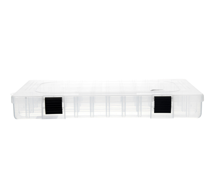 Flagman Tackle Box #7 – містка одностороння коробка, яку виготовлено з прозорого ударостійкого пластику. Завдяки системі знімних перегородок відмінно підійде для зберігання і транспортування приманок різноманітних типів і розмірів, а також джиг-головок, елементів оснастки та інших аксесуарів. Кришка рибальської коробки Flagman Tackle Box #7 закривається на дві міцні надійні защібки. Розміри: 38,5x22,5x8 см.