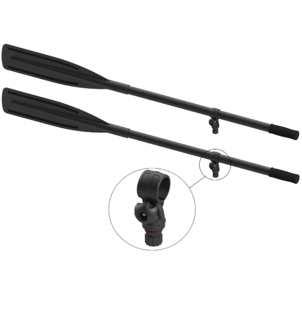До комплекту цієї моделі входить пара весел з уключинами RLp035, які дозволяють створити просту та функціональну гребну систему на надувному човні. Довжина весел підходить для човнів шириною 1, 6 м. Кожне з весел розбирається на дві частини (лопать і рукоятку з люверсом). Прямі лопаті легко захоплюють воду, що робить веслування зручнішим. Вони виготовлені з поліпропілену: матеріалу, що забезпечує гнучкість та міцність виробу. Уключина RLp035 охоплює трубу рукоятки, послабивши її, користувач має можливість відрегулювати комфортну глибину занурення для кожного весла. Обертання в процесі греблі забезпечують карданні з’єднання. Кожна із уключин оснащена адаптером у формі 12-кутної зірки, сумісним з усіма монтажними системами BORIKA FASTen®.