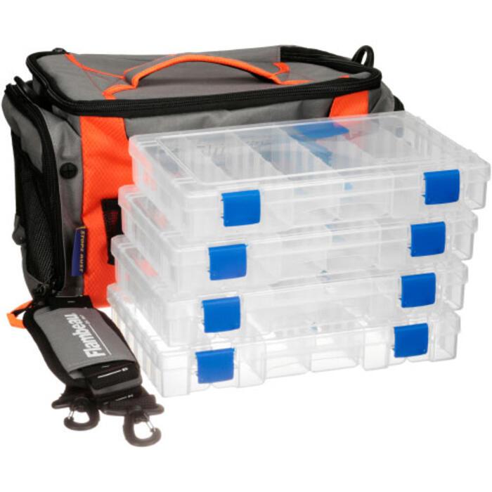 Практична та надійна сумка із синтетичного матеріалу з верхнім завантаженням. Комплектується пластиковими коробками 4007 (4 шт) для приманок та рибальських дрібниць. Внутрішня сторона їх оброблена спеціальним покриттям Zerust, що захищає приманки всередину. Може вмістити коробку 3000 (у комплект поставки не входить). Зовнішні V-подібні тримачі дозволяють закріпити інструменти. Є 2 бічні кишені на блискавці і 2 з сітки. Бічна прогумована кишеня має отвір для волосіні, що дозволяє самостійно намотати її на шпулю. У конструкції все зроблено для зручної експлуатації на риболовлі, включаючи лінійку для визначення довжини риби, нанесену на ремінь транспортування. Для того, щоб безпечно зберігати найцінніші речі, наприклад, мобільний телефон, є водонепроникна кишеня з вінілу.