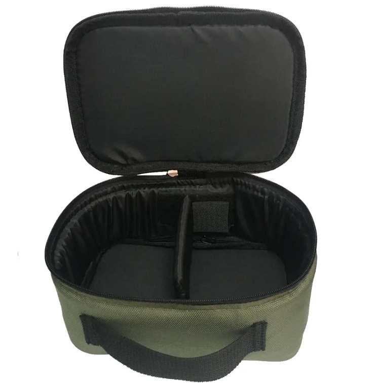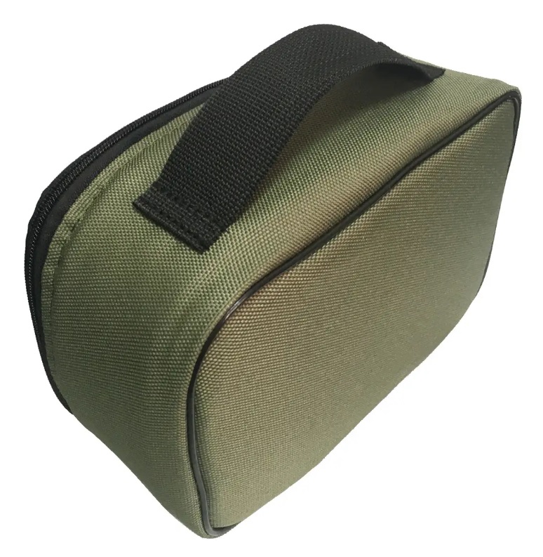 Зовнішні стінки сумки мають товстий наповнювач, який запобігає пошкодженню котушок під час транспортування. Розміри сумки 21х14х9 см.