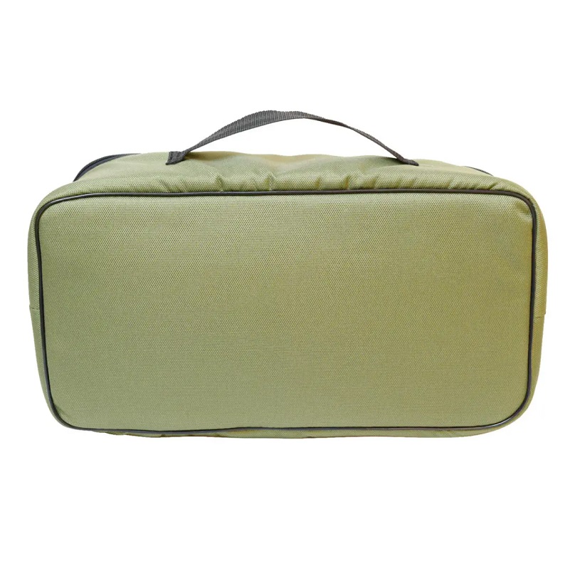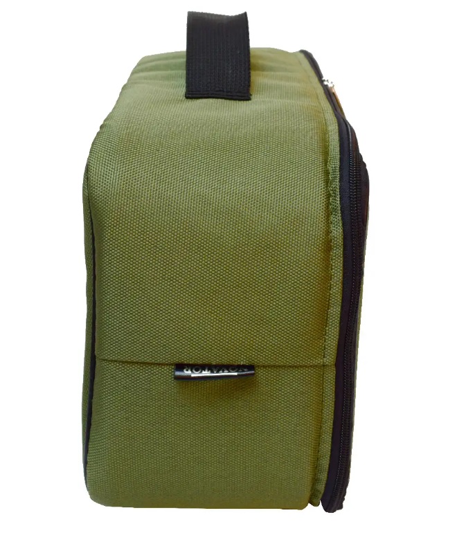 Зовнішні стінки сумки мають м’який наповнювач товщиною 10 мм, який запобігає пошкодженню котушок під час транспортування. Верхня кришка з внутрішньої сторони обладнана кишенею на блискавці в якій можна зберігати різні аксесуари. Розміри сумки 27х17х11 см.
