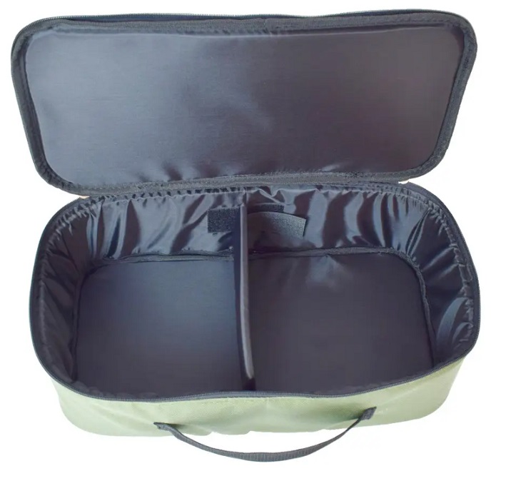 Дану перегородку можна розміщувати за власним бажанням, що дозволяє використовувати сумку для котушок різних розмірів. Для пошиття сумки використовується тканина Оксфорд 600D і інша якісна фурнітура.