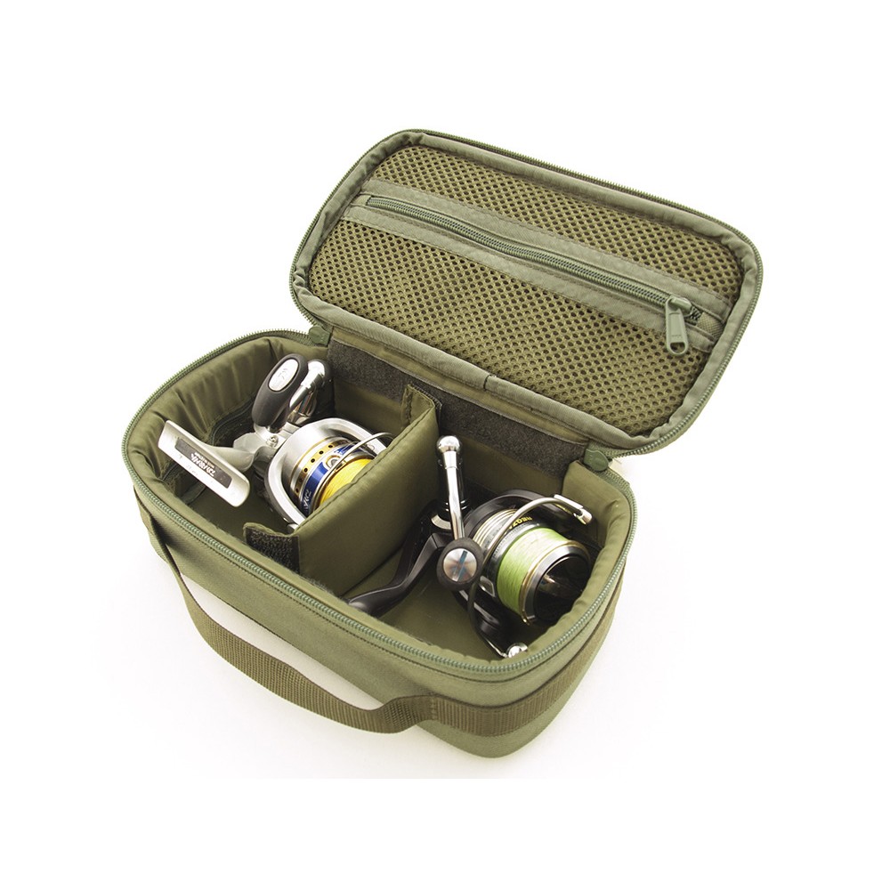 Жорсткий чохол для двох котушок розміром 2000. Підійде також для деяких моделей 2500. Чохол на відділення ділить знімна м’яка перегородка, яку можна переміщати вздовж чохла. Під кришкою є сіткова кишеня на блискавці для дрібниць. Для перенесення в руці є зручна ручка. Виготовлений з непромокаючої тканини з ПВХ просоченням і якісної фурнітури. Для захисту котушок від пошкоджень всередині бокових стінок встановлена піна 5мм і пластик 2мм, які надають жорсткість всьому чохлу. В кришці і дні також вшита піна 8мм. Внутрішні розміри: 22х11х8см. Гарантія 1 рік.