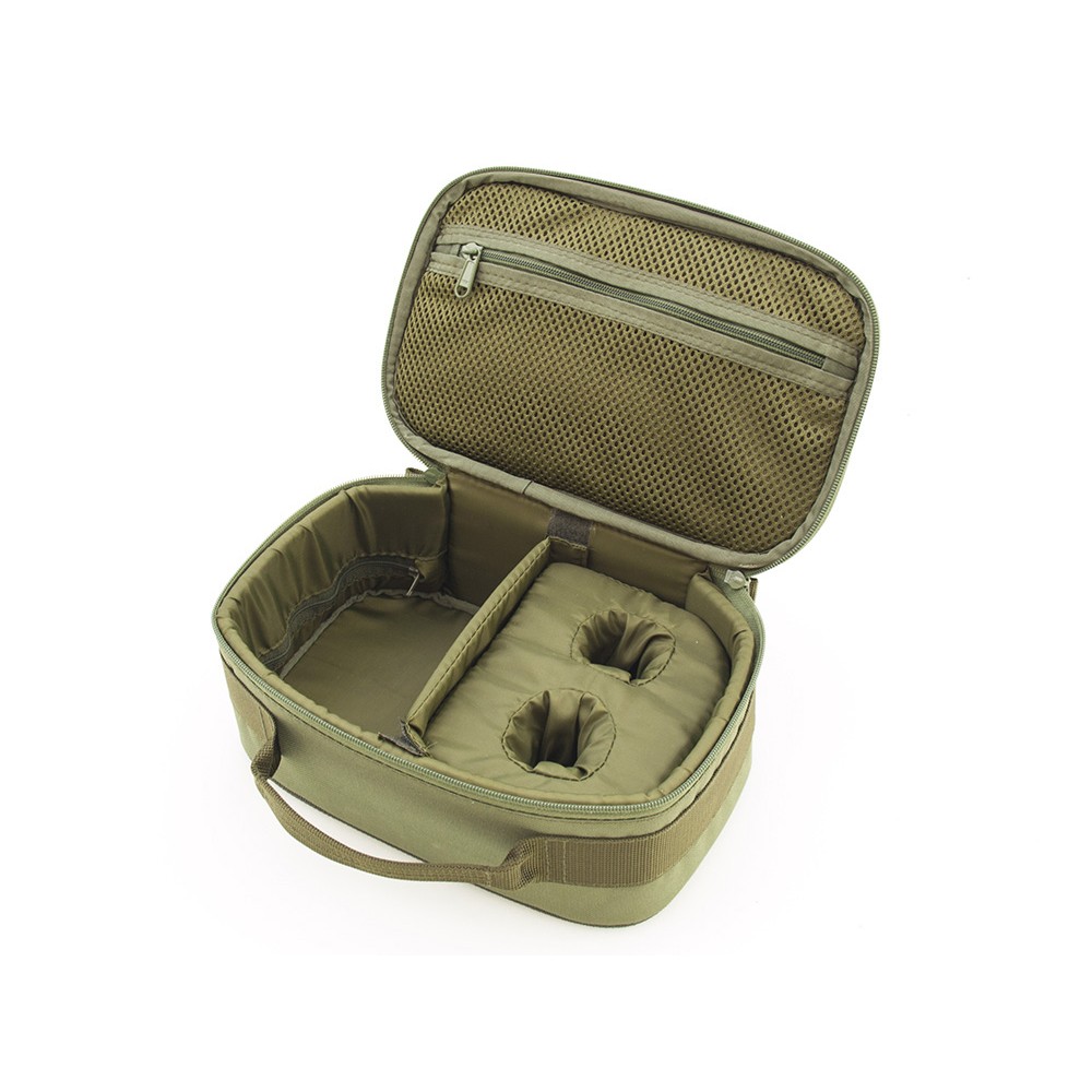 Жорсткий чохол для котушки розміром до 5000 і двох запасних шпуль або 2-х котушок. Чохол на відділення ділить знімна м’яка перегородка. В одному відділенні для шпуль передбачена обшита тканиною м’яка подушка з отворами, яка може зніматися при необхідності. Під кришкою є сіткова кишеня на блискавці для дрібниць. Для перенесення в руці є зручна ручка. Виготовлений з непромокаючої тканини з ПВХ просоченням і якісної фурнітури. Для захисту котушок від пошкоджень всередині бокових стінок встановлена піна 5мм і пластик 2мм, які надають жорсткість всьому чохлу. В кришці і дні також вшита піна 8мм. Внутрішні розміри: 25х15х10см. Гарантія 1 рік.