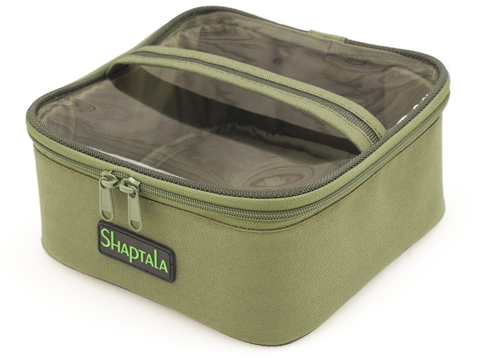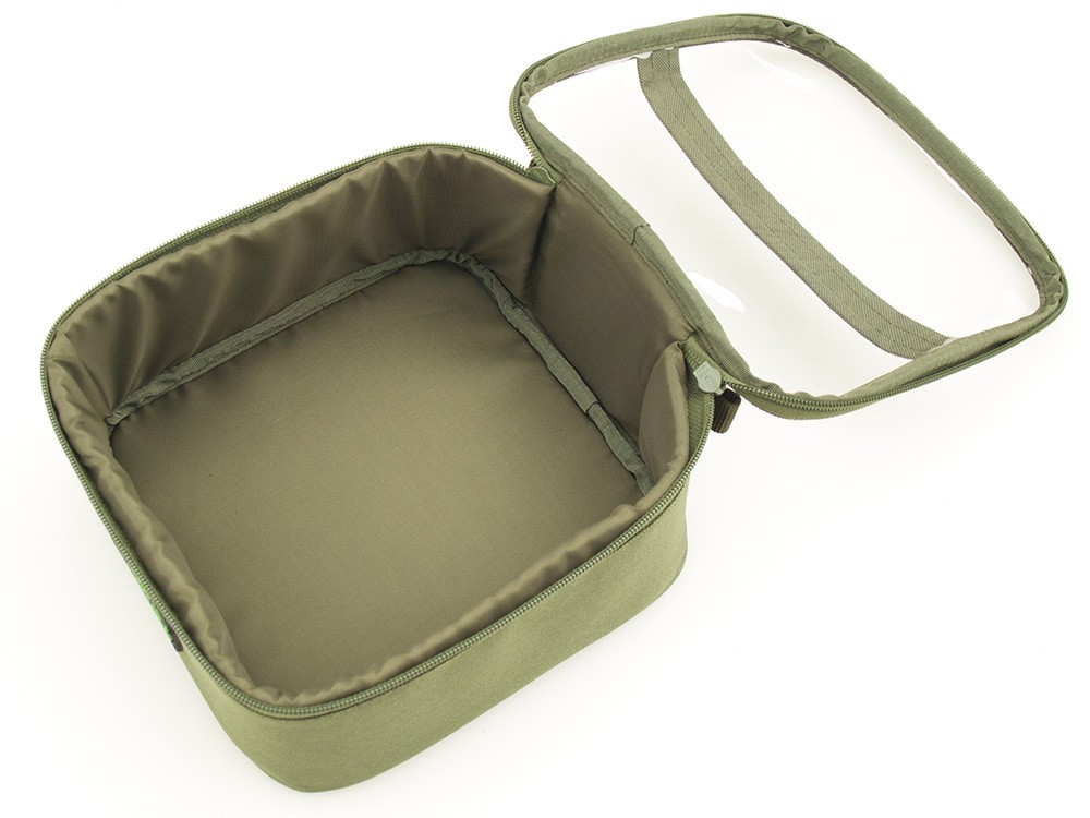 Зручна невелика сумка для снастей та аксесуарів. Особливість сумки — прозора кришка, через яку можна швидше побачити потрібну річ. Кришка виготовлена з стійкої до УФ випромінювання плівки. В стінках сумки вшита піна 5мм. Відкривається за допомогою двох бігунків. Є ручка для перенесення в руці. Внутрішній розмір: 20х20х10см.