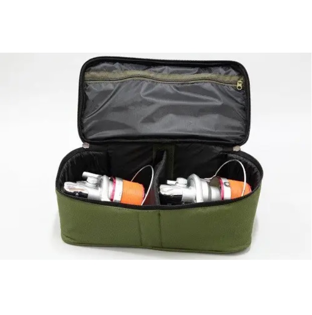 Чохол для 2 котушок Fisher — добре тримає форму та має жорсткі стінки. Вміщує дві котушки розміром до 10000. Футляр на дві котушки розділений на два повноцінні відсіки ущільненою перегородкою, яка може від'єднуватися за допомогою липучки, створюючи збільшений внутрішній простір і може послугувати сховищем не тільки для котушок, але й інших необхідних речей на риболовлі (може бути футляром для зберігання пачок силікону). Для зручності експлуатації закривається подвійною блискавкою. Чохол обладнаний зручною пропіленовою ручкою, що дасть змогу із комфортом транспортувати ваші улюблені котушки. Щільна тканина ОКСФОРД-Д 600 з ПВХ у сукупності з пластиком повністю захистить коропові котушки від впливу зовнішнього середовища.